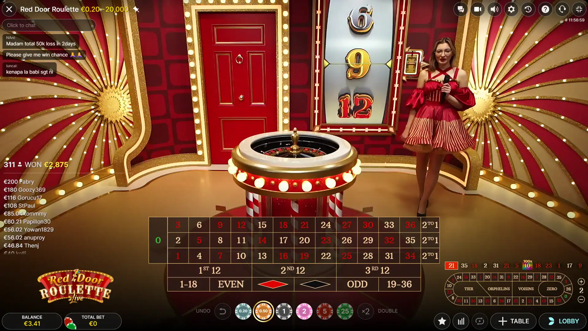 El bonus se activa únicamente si aciertas un Straight Up en un número marcado con llave. Por lo tanto, otras apuestas no abren la puerta roja.